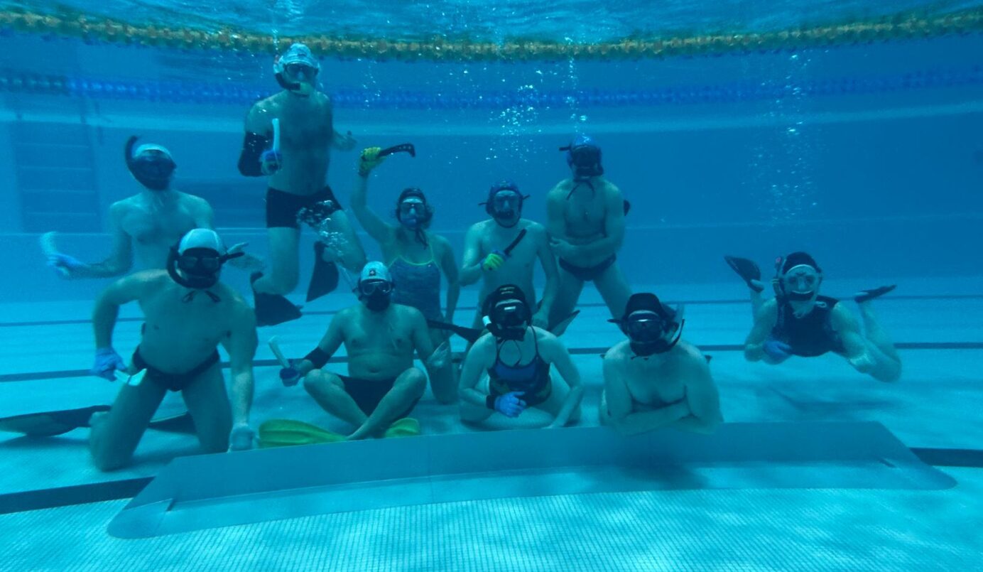 Unterwasserhockey ist ein Teamsport mit je 6 Spielern und wird am Boden des Pools gespielt. Gefördert werden Geschwindigkeit, Wendigkeit und vor allem ein enges Zusammenspiel im Team, schliesslich müssen alle regelmässig Luft holen. Ein echt atem(be)raubendes Spiel!